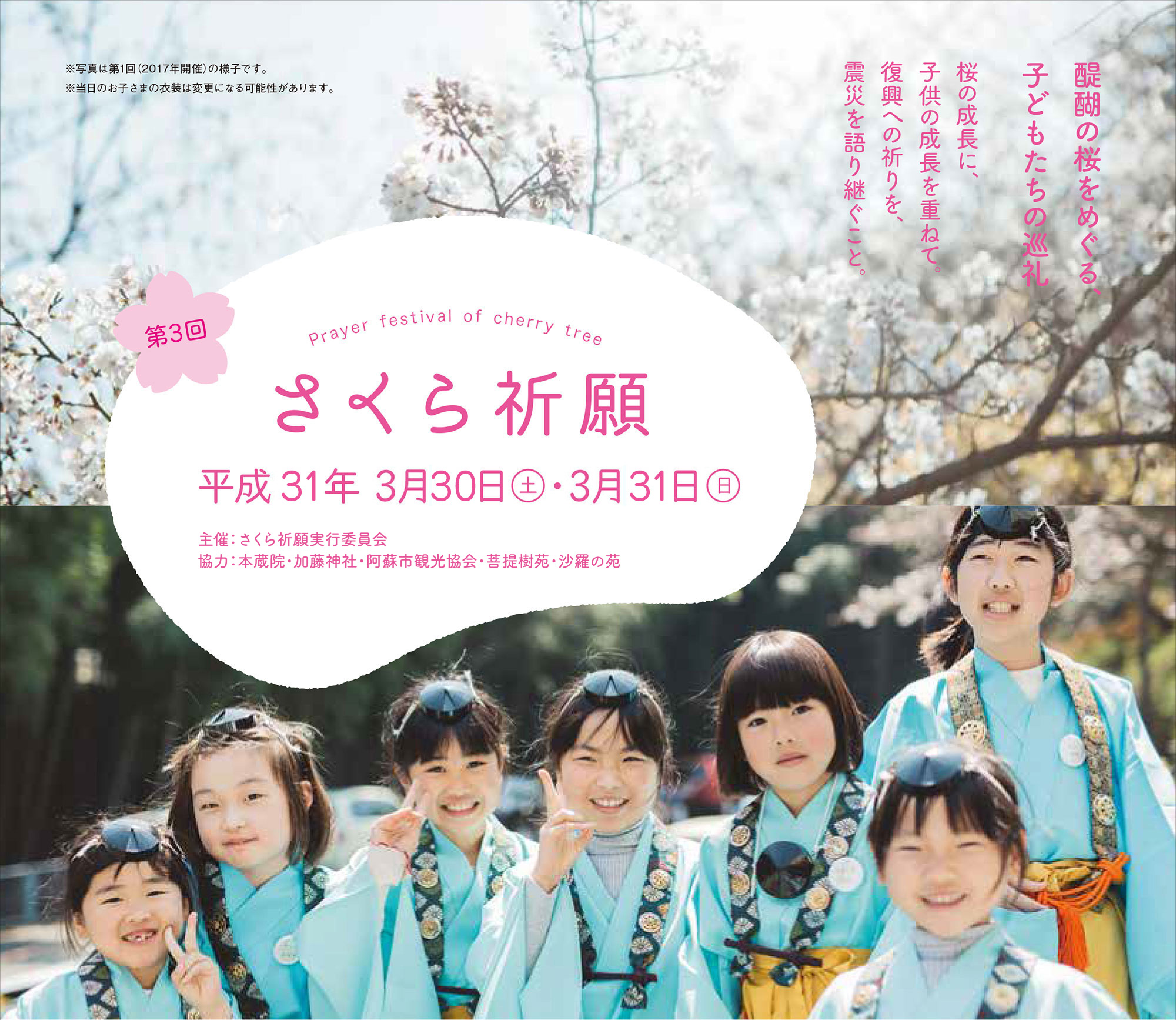震災復興を祈念して、阿蘇神社・加藤神社・菩提樹苑に植樹された三本の醍醐の桜に、