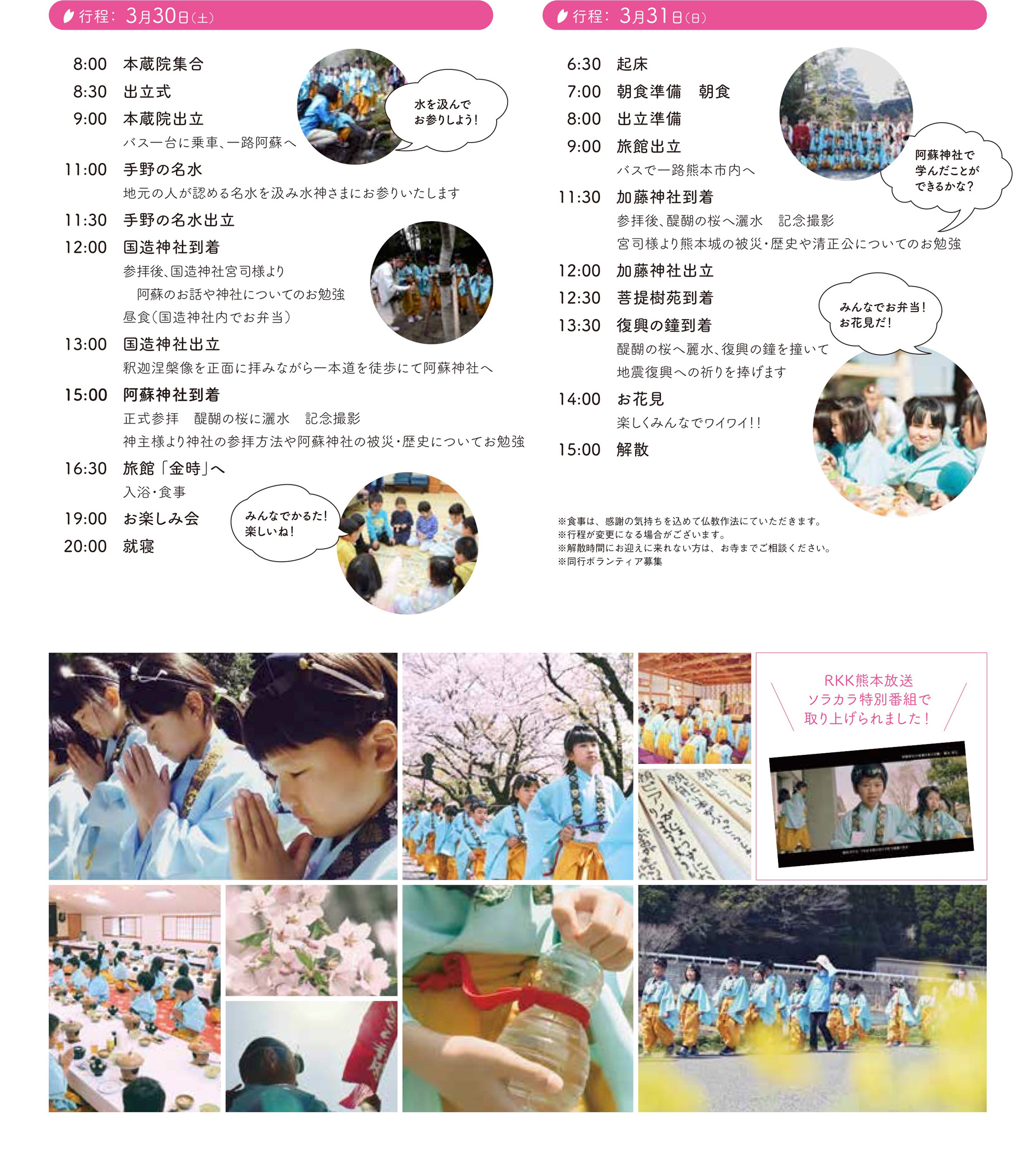- 参加中はフェイスブック上にて随時状況を動画や写真で配信いたします